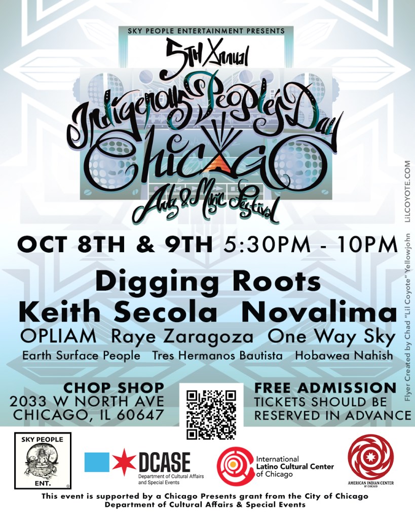 We are excited to announce the 5th Annual Indigenous Peoples Day Chicago Arts & Music Festival, a vibrant celebration of Indigenous culture, music, and a powerful call to abolish Columbus Day. Taking place on October 8th and 9th at the renowned Chop Shop in Wicker